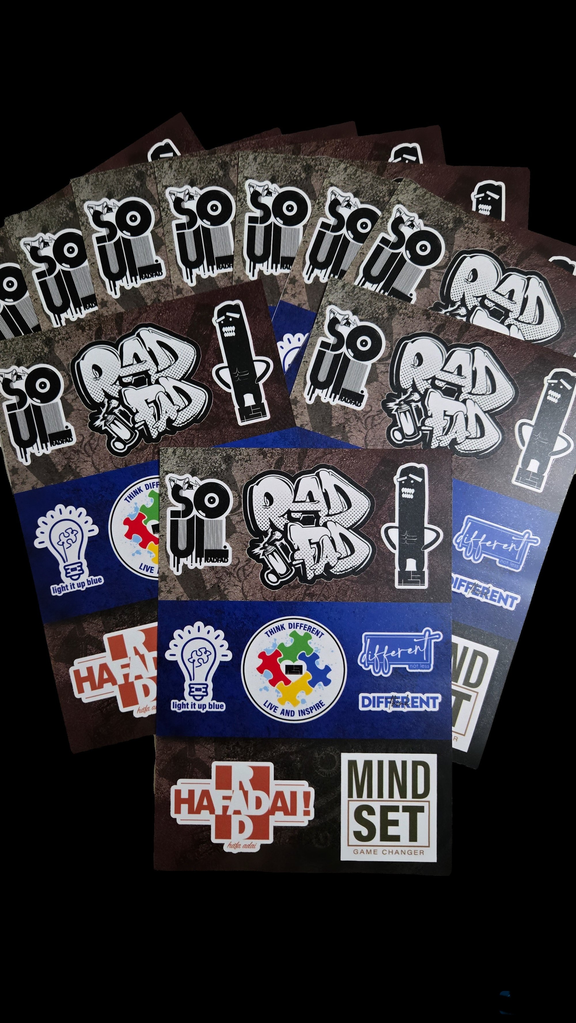 A5 RADFAD branded sticker sheets for Autism Awareness. Proceeds to be donated to Autism Community Together (ACT).
